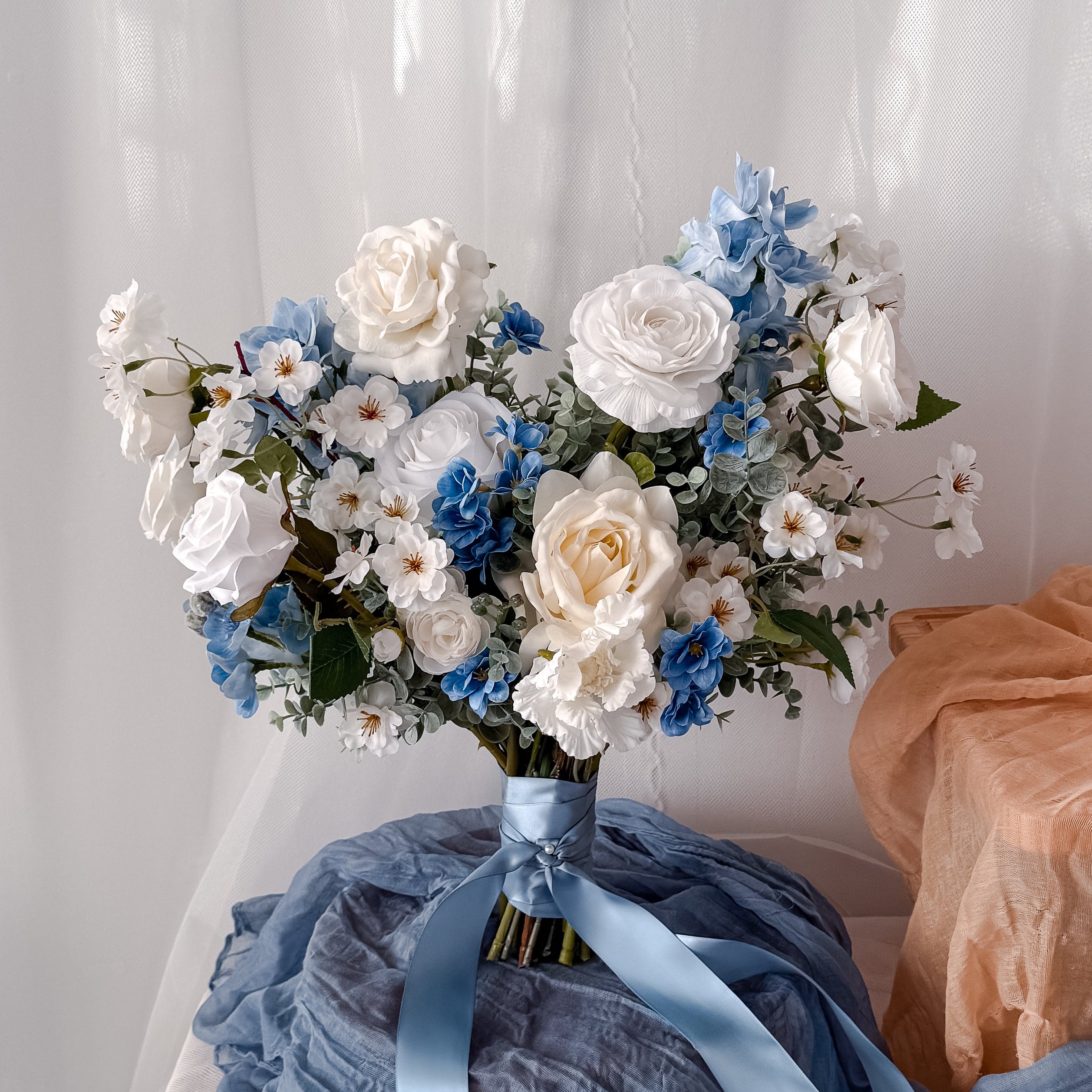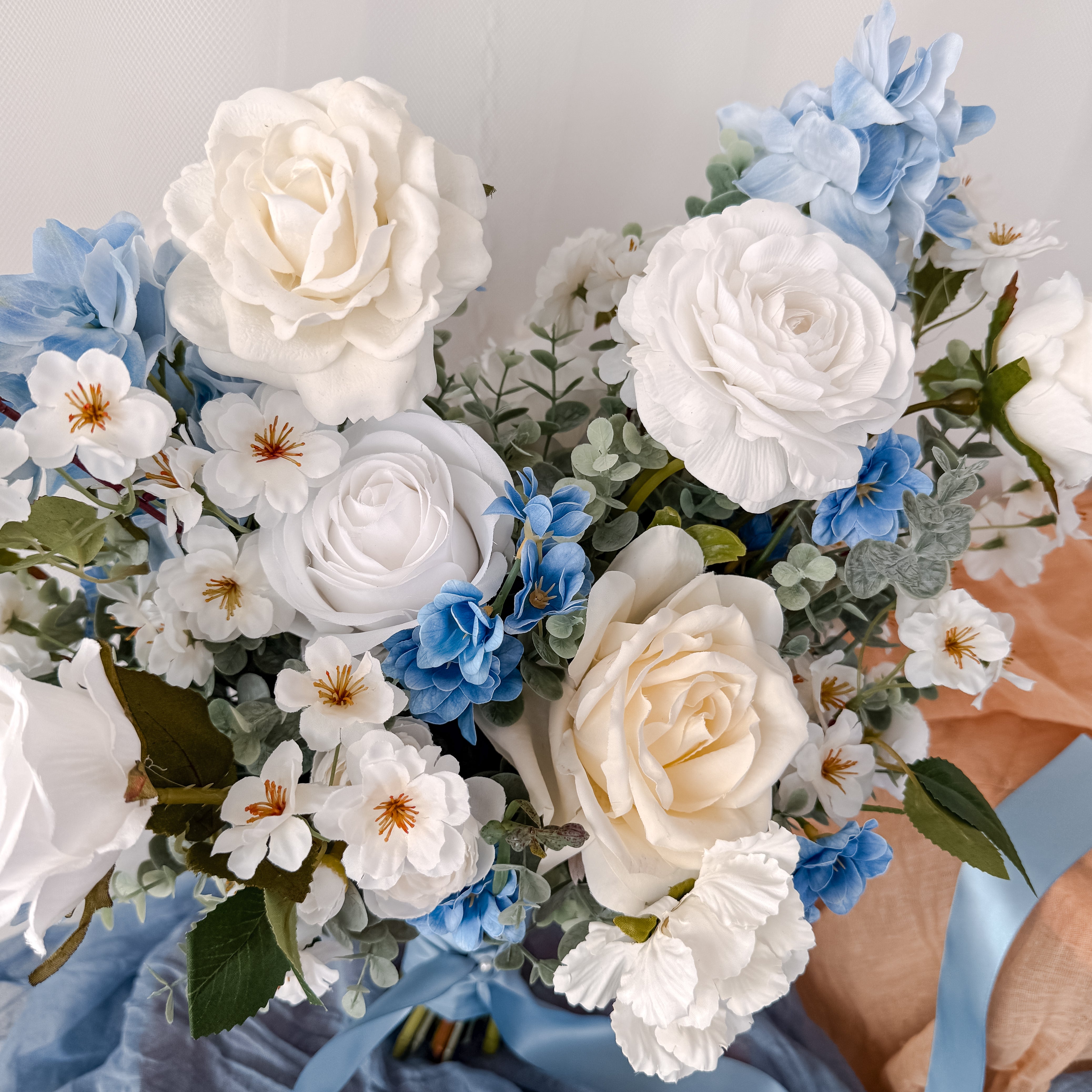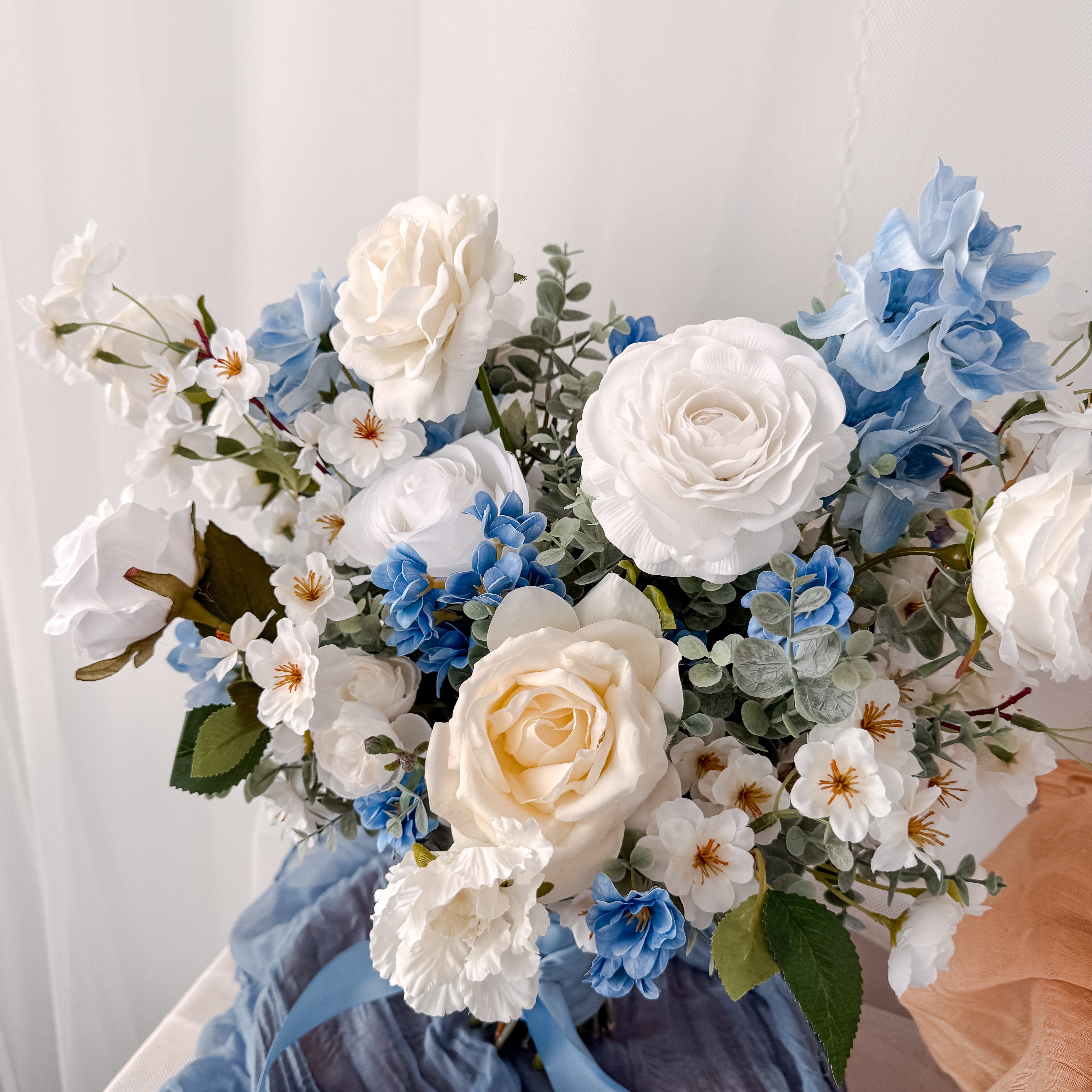 Blue Harmony - Blue and White Ranunculus, Delphinium, Cherry Blossom Artificial