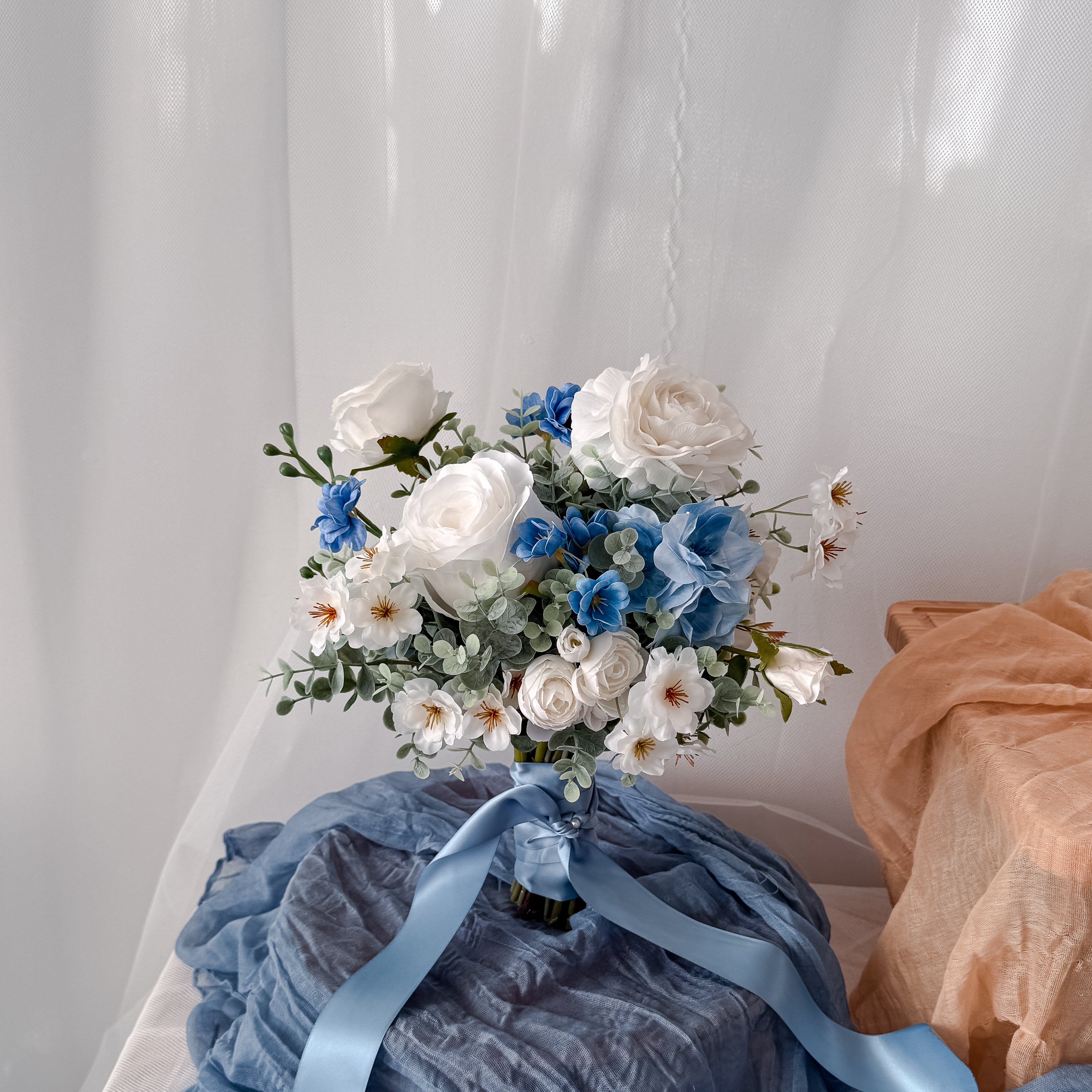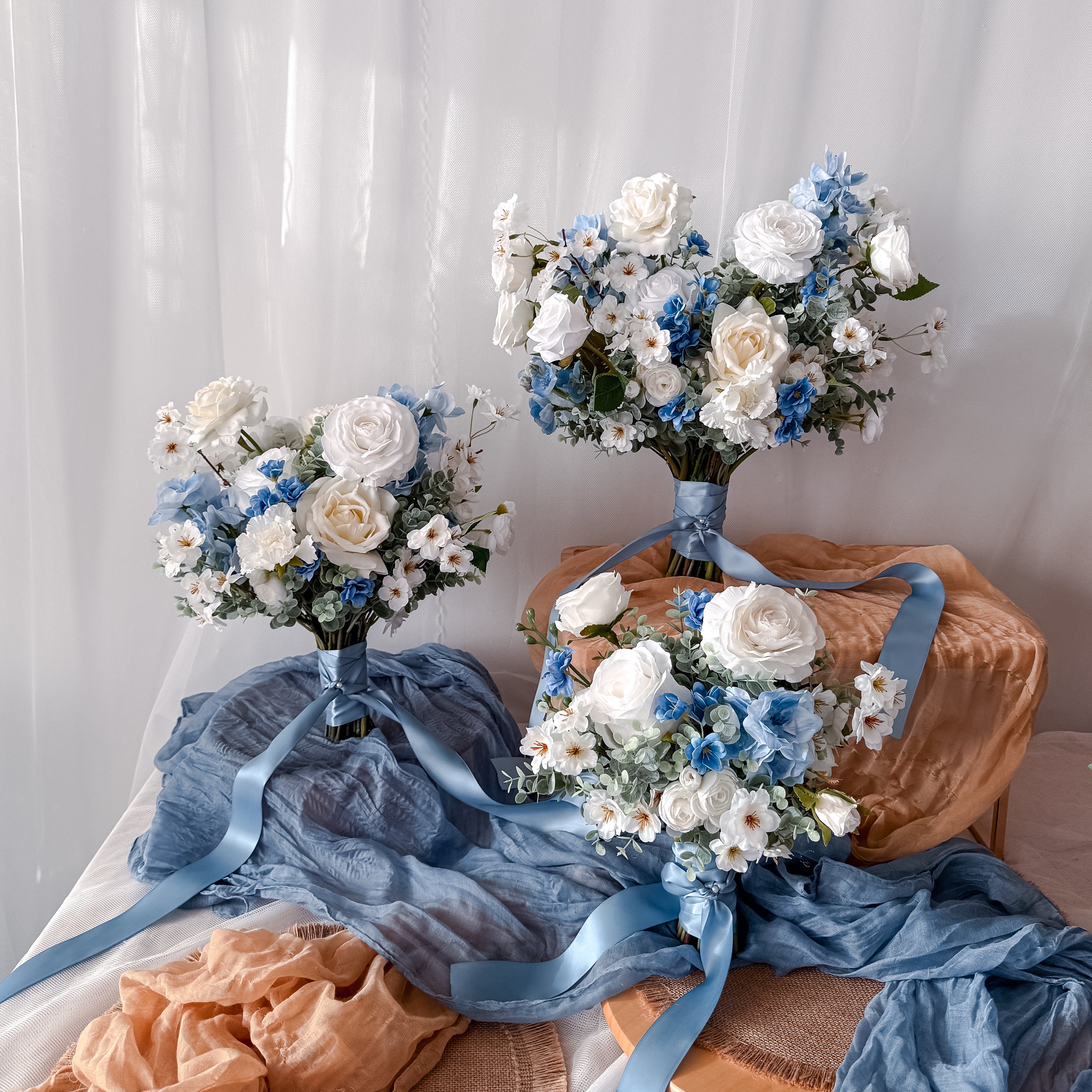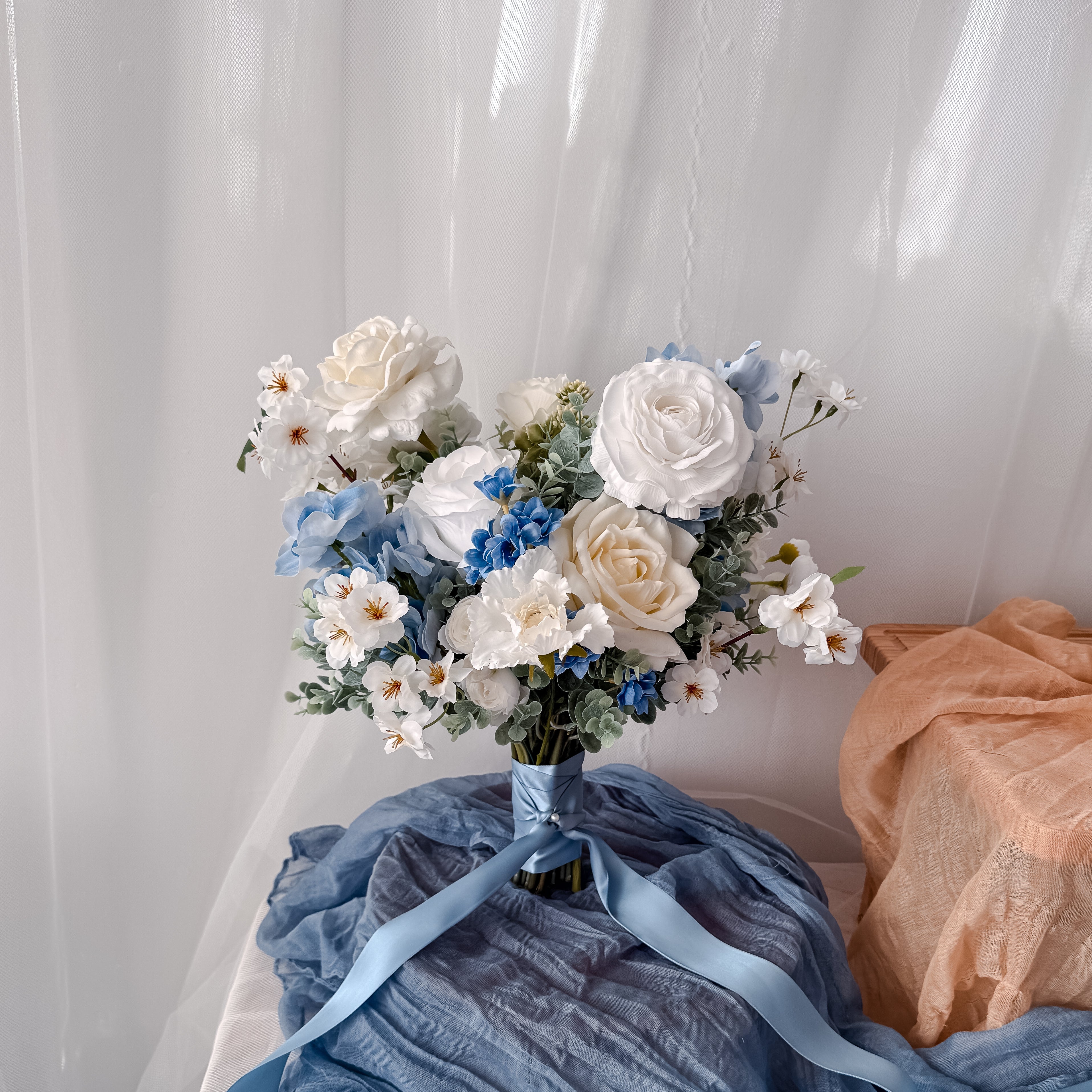 Blue Harmony - Blue and White Ranunculus, Delphinium, Cherry Blossom Artificial
