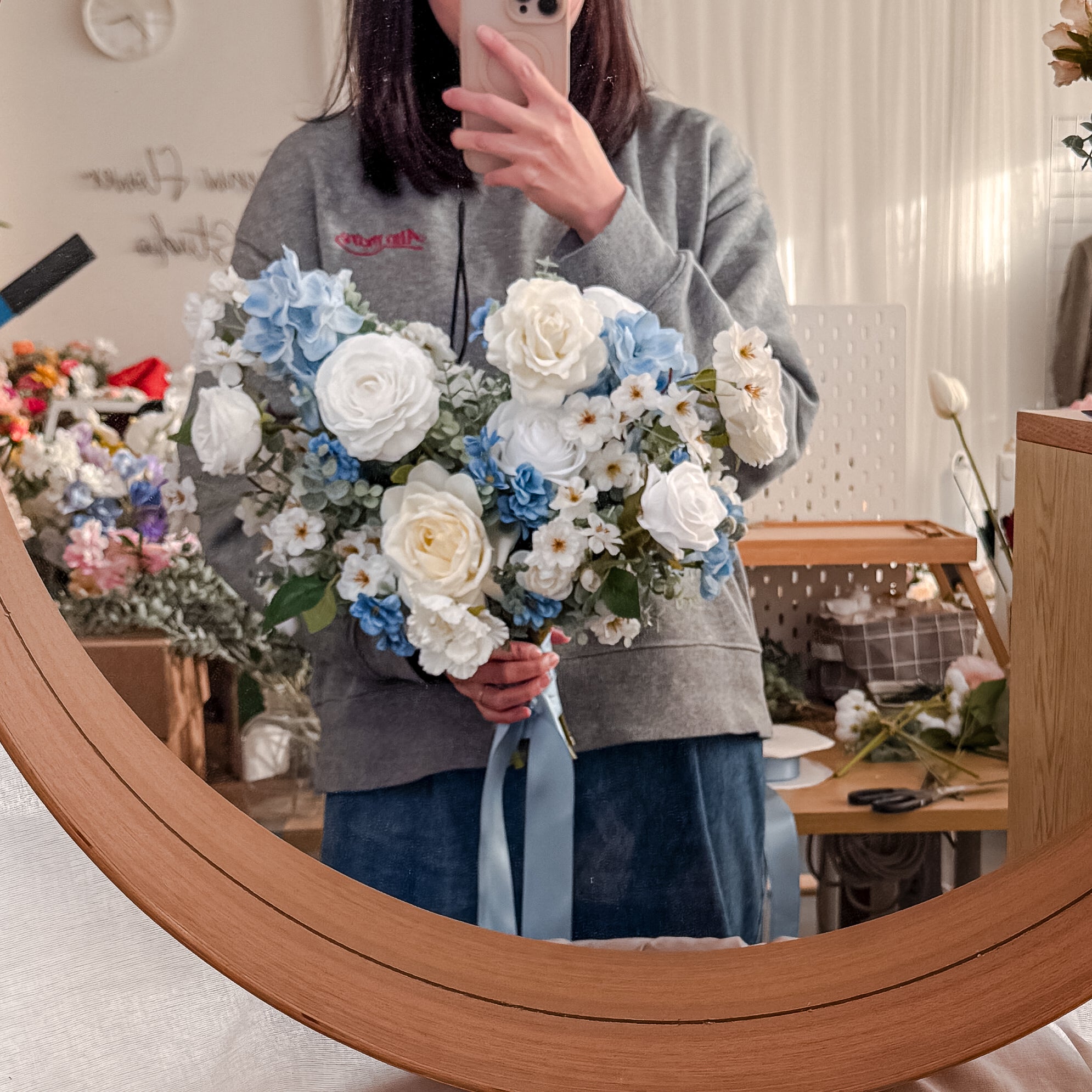 The bouquet is made with high-quality artificial flowers that look as real as fresh flowers and are able to last forever.