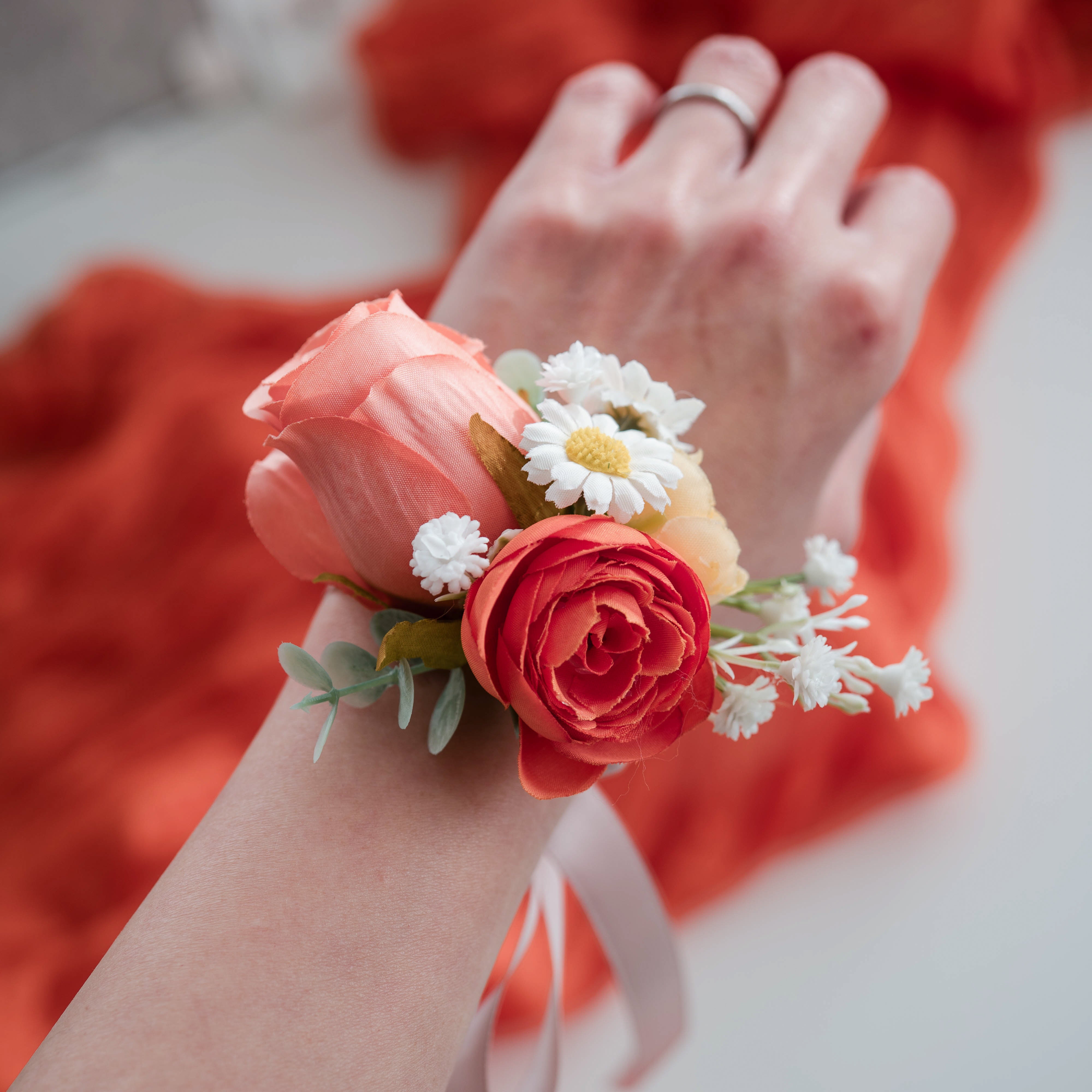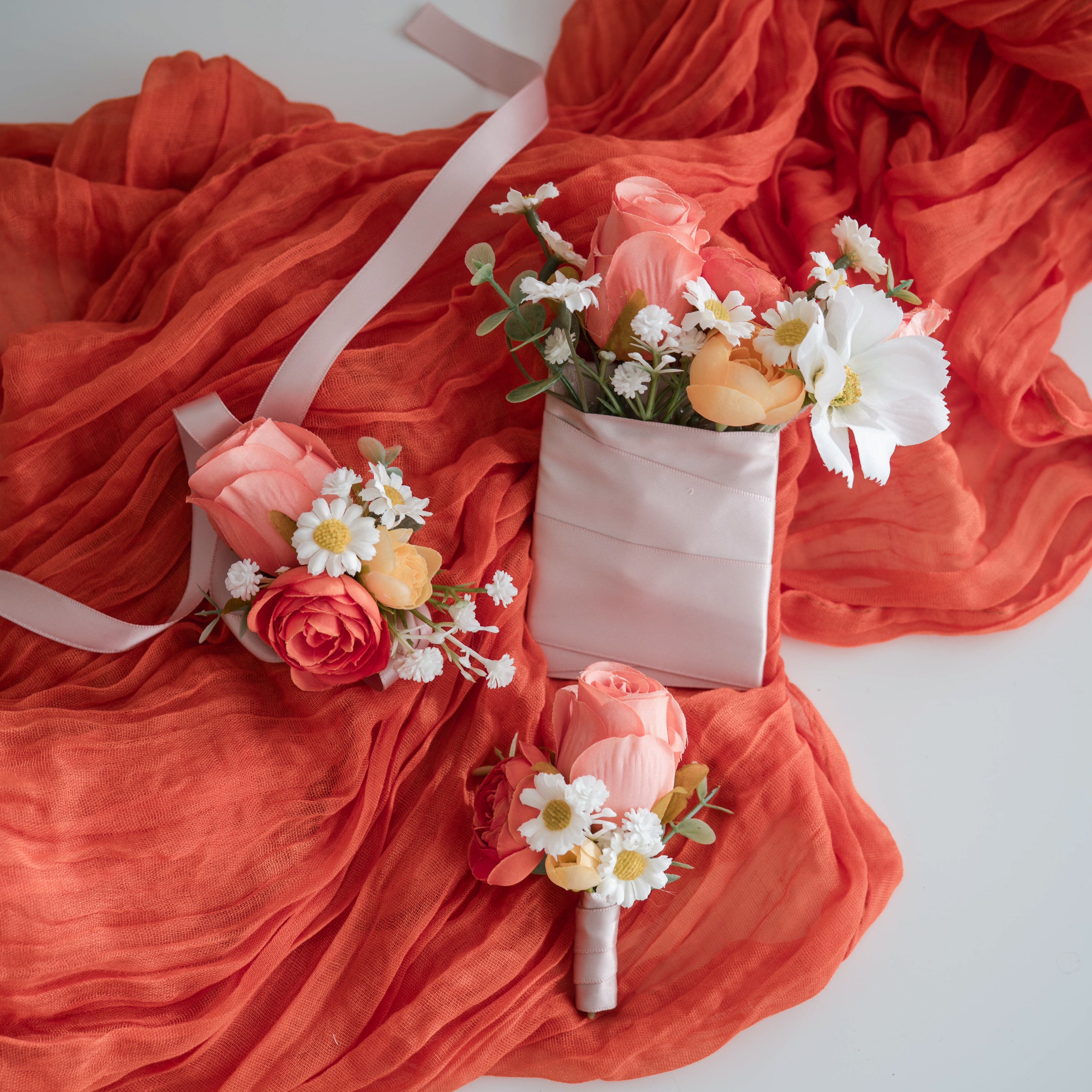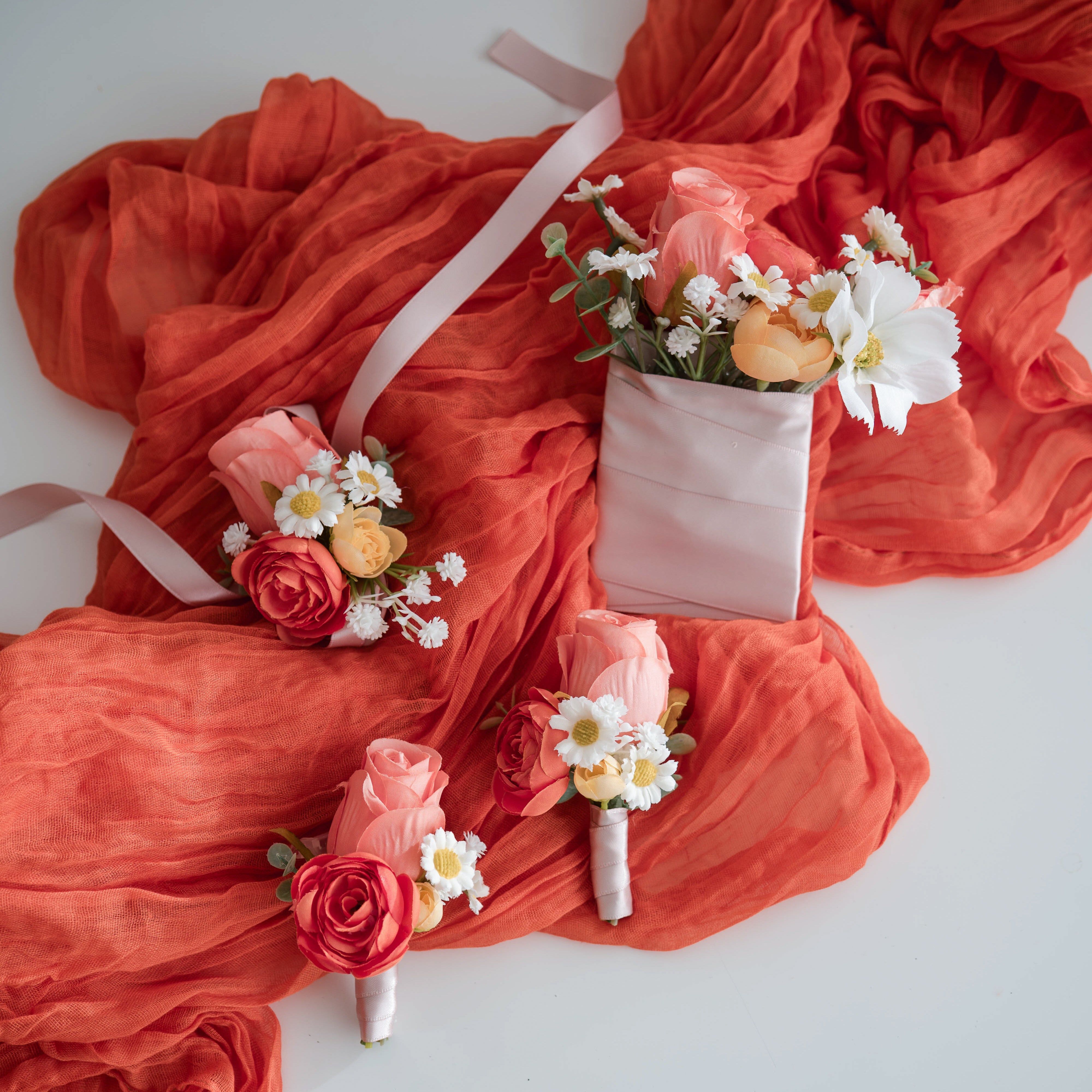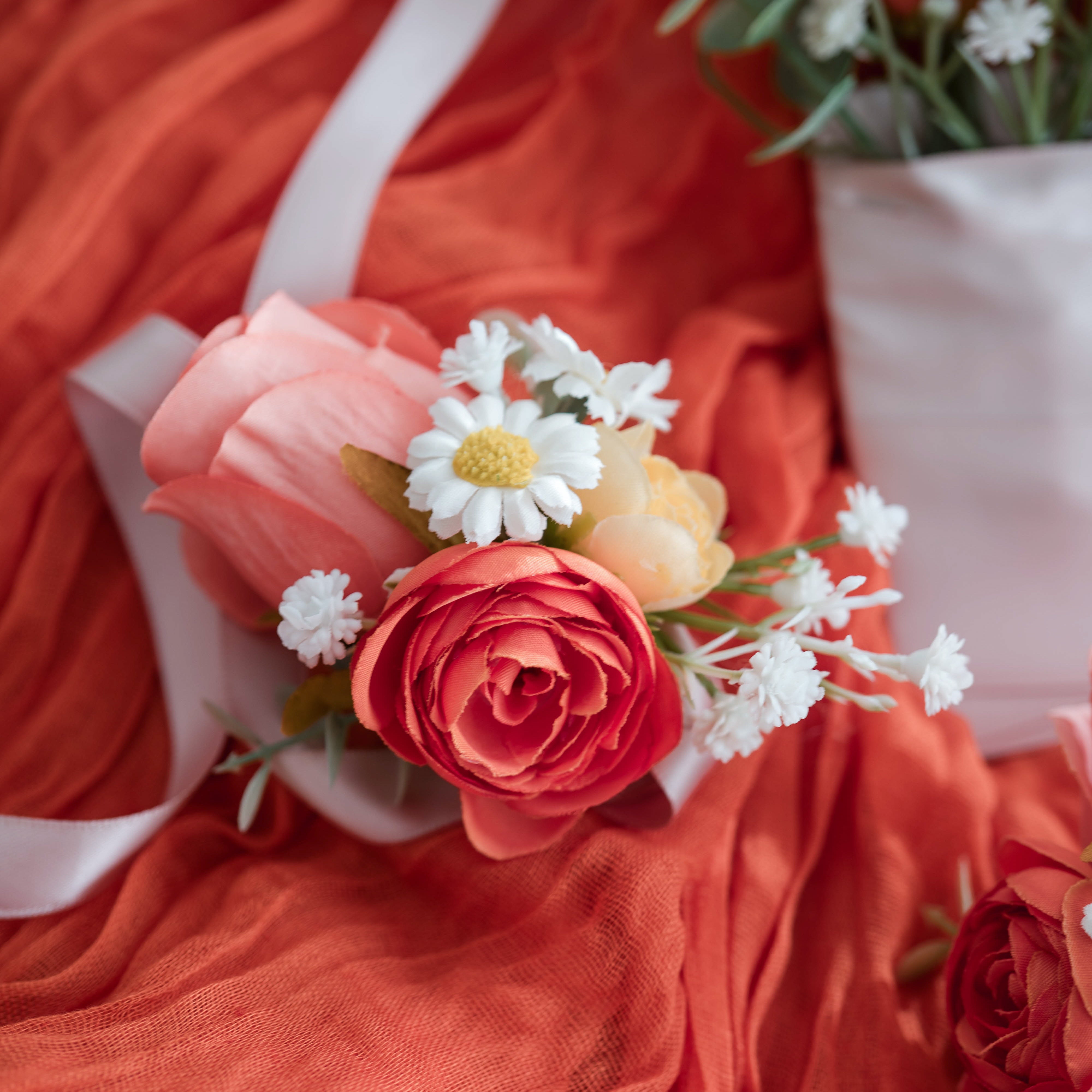 Sunlit Fresco - Orange Pink Ranunculus, Rose Buttonhole, Corsage, Pocket Square